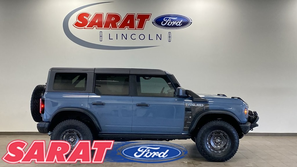 This outstanding example of a 2023 Ford Bronco Everglades is offered by Sarat Ford Lincoln. This SUV is a superb example of what a tough, work focused vehicle should be. Exceptional towing, acceleration and torque will help you get the job done. Put performance, safety, beauty, sophistication and all the right amenities into a car, and here it is! Now you can own luxury without the luxury price tag! Equipped with 4WD, this Ford Bronco Everglades gives you added confidence to tackle the surface of any path you take. It's not a misprint. And the odometer isn't broken. This is a very low mileage Ford Bronco. A rare find these days. Sarat Ford Lincoln Where Customers Become Friends since 1929